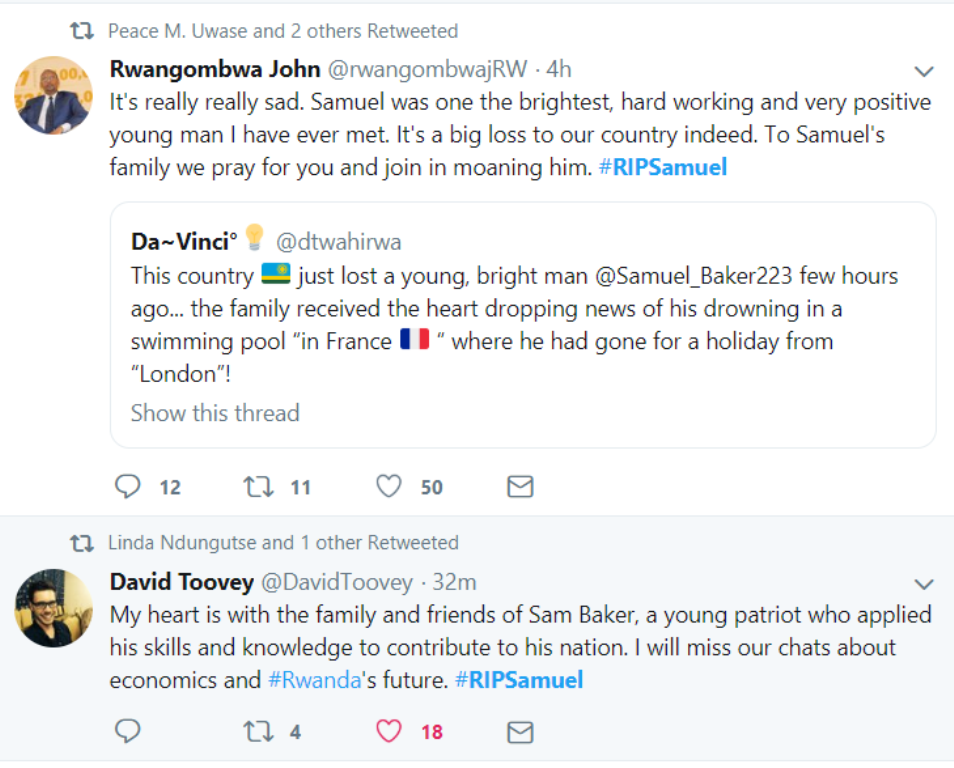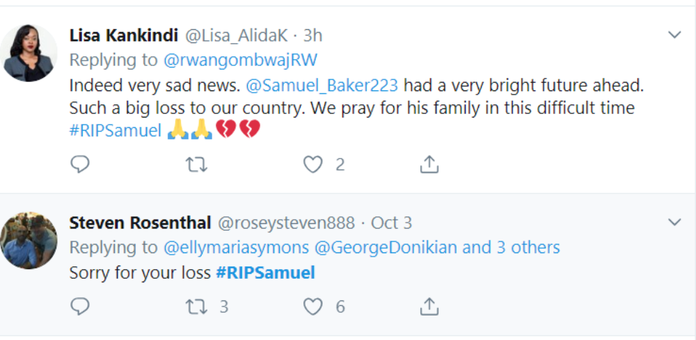 Ati “ Birababaje cyane. Samuel yari umwe mu basore b’abahanga, bakora cyane kandi bafite ibitekerezo byubaka nigeze guhura nabo. Ni igihombo gikomeye ku gihugu. Ku muryango wa Samuel turabasengera kandi twifatanyije namwe.”