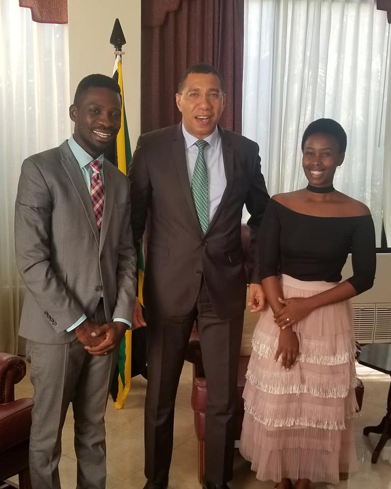 Hon.Bobi Wine na Hon.Andrew Michael Holness n’umugore wa Bobi Wine witwa Barbie Itungo
