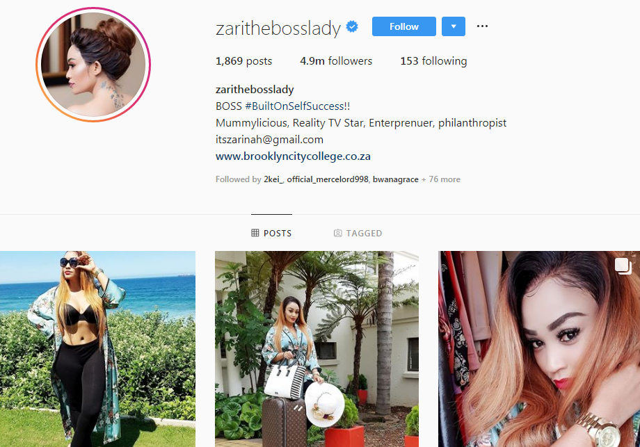 Zari Hussein bakunda kwita Zari the Boss Lady yabayeho umuhanzi aba umunyamideli ariko ubu n’umuntu ukunzwe cyane ku mbuga nkoranyambaga nka Instagram .