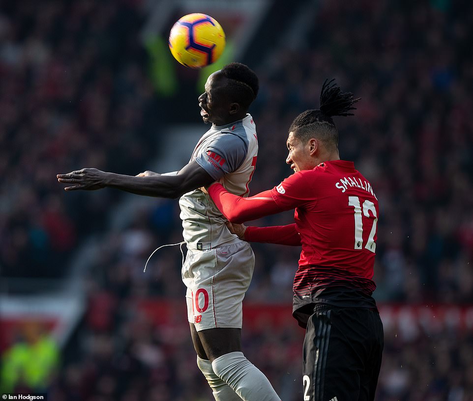 Saido Mane wa Liverpool arwanira umupira na Smalling wa Man United