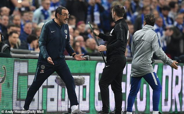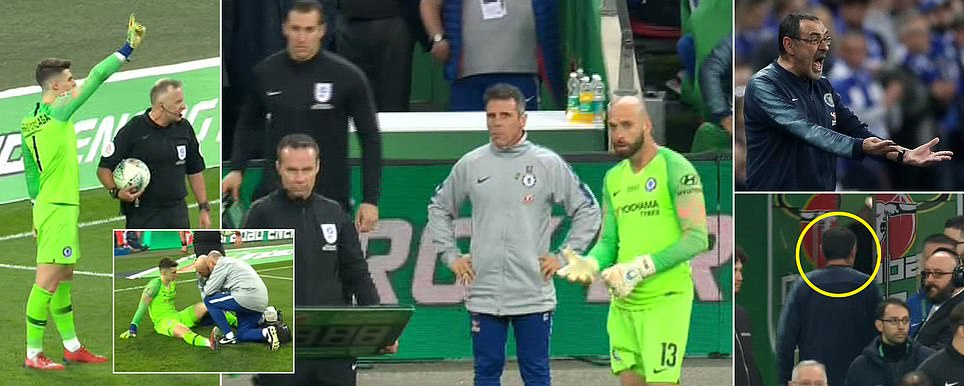 Umutoza wa Chelsea akaba yasimbuje umuzamu wari umaze kugira imvune ariko umuzamu wa Chelsea witwa Kepa Arrizabalaga yanga kuvamo kandi ntago bajya kumuteruramo birakaza umutoza wa Chelsea Maurizio Sarri ararakara cyane akubita hasi icupa ry’amazi yari afite agaragaza ko umuzamu yamusuzuguye kandi yashakaga gushyiramo undi muzamu uzi gufata amapenalite .