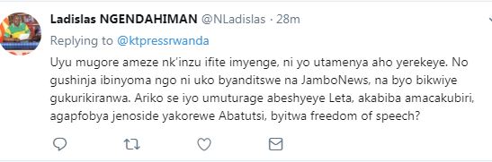 Abajijwe urwandiko rwe nirudasubizwa icyo azakora dore ko yari yavuze ko hari abagiye bandikira Perezida wa Repubuika inzandiko zitandukanye ariko ntibasubizwe akaba ariyo mpamvu we yashatse kwandiko urwandiko rufunguye ati “Ni ntasubizwa icyo gihe nzababwira ikizakurikira ariko ubu reka tubanze turebe ko hari icyo bitanga”.Abanyamakuru bamubajije ibibazo byinshi kandi byose akabisubiza ubona atuje kandi ubona ntabwoba afite.