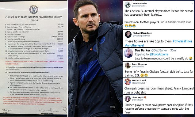 Umutoza w’ikipe ya Chelsea Frank Lampard yashyizeho ibihano bikaze ku bakinnyi b’iyi kipe ndetse bikaba bikaze cyane nkuko bigaragara ku rutonde rwabyo.Umukinnyi wese ukerererwa kuza ku myitozo ahanishwa amande ya £20,000 naho buri munota agacibwa £500 gukererwa mu nama y’ikipe.