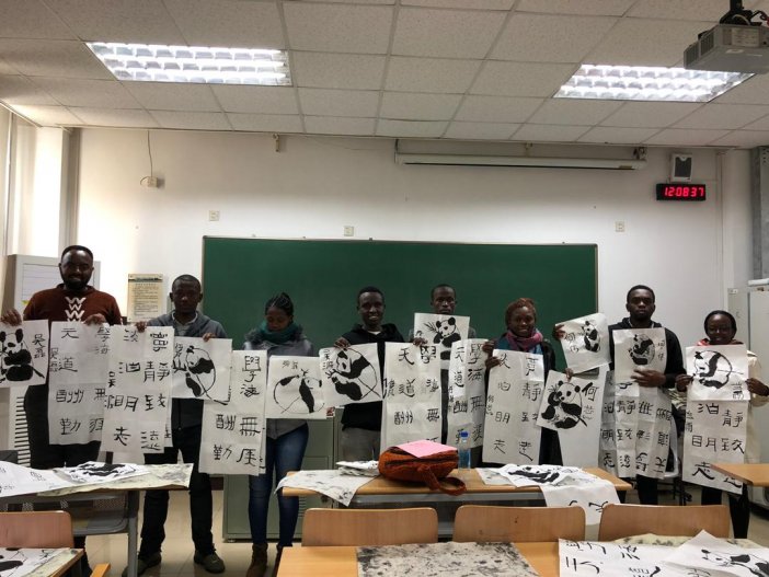 Aha aba banyeshuri berekanaga ibyo bize mu rurimi rw’Igishinwa n’umuco waho