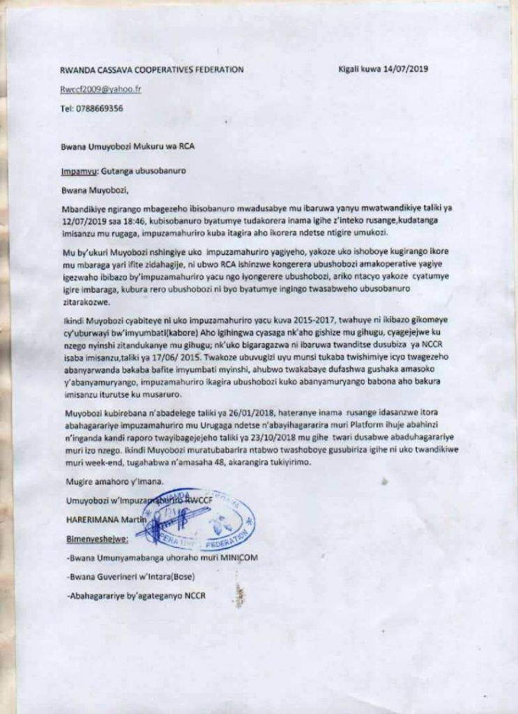 Twashatse kubaza NCCR icyo yaba imarira amakoperative mu rwego rwo gucyemura ibibazo no kwiteza imbere maze umuyobozi wayo atubwira ko ari muri konji.
