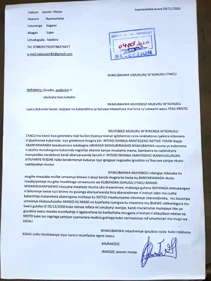 Amakuru agezweho ndetse arimo gucicikana hirya no hino n’urwandiko rwa Irakoze Janvier Moise yanditse asaba ko Perezida Kagame agirwa Umwami mu Rwanda .
