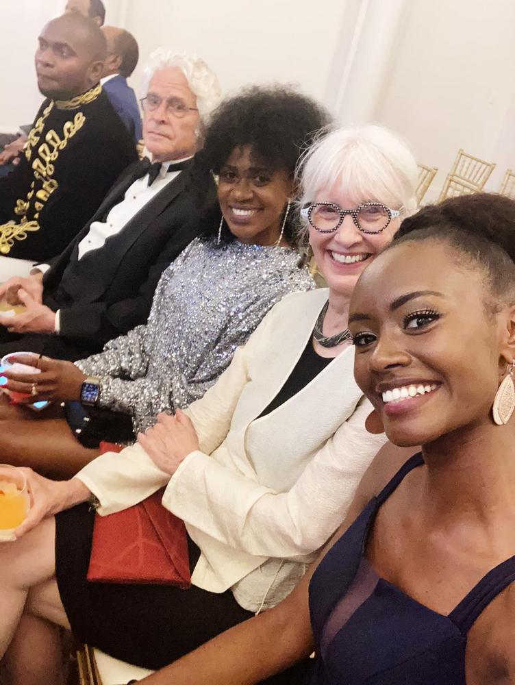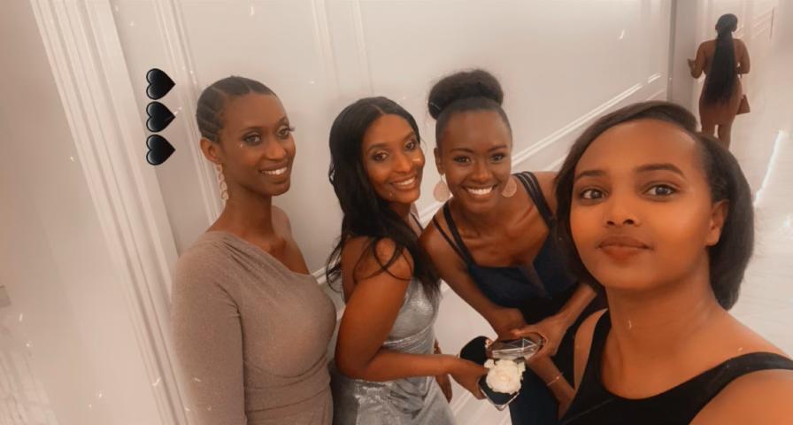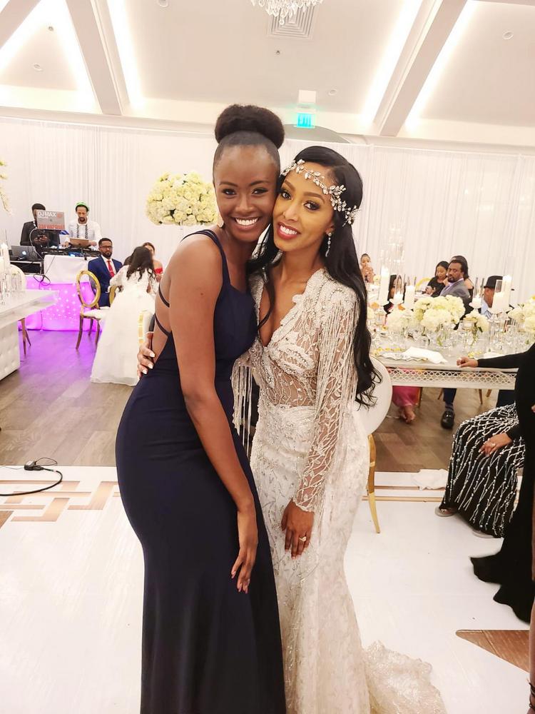 Miss Grace Bahati wari witabiriye ubu bukwe afata ifoto n’umugore wa Meddy Mimi Mehfira