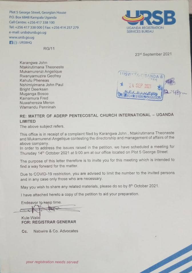 ADEPR ya Uganda n’ubwo yasenyutse yasize imanza mu Nkiko ,ubu hahamagajwe abantu 11 barimo Karangwa John wayigurishije