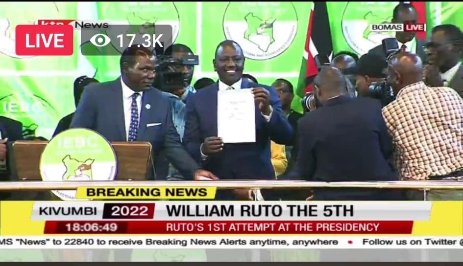 Amakuru agezweho ni uko abantu benshi bari bategereje utangazwa ko abaye Perezida wa Kenya hagati y’abagabo babiri aribo William Ruto na Raila Odinga .