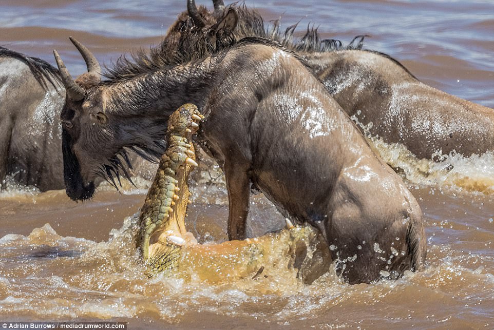 Imbogo zambukaga umugezi Maasai Mara zagabweho igitero n’ingona reba amafoto atangaje